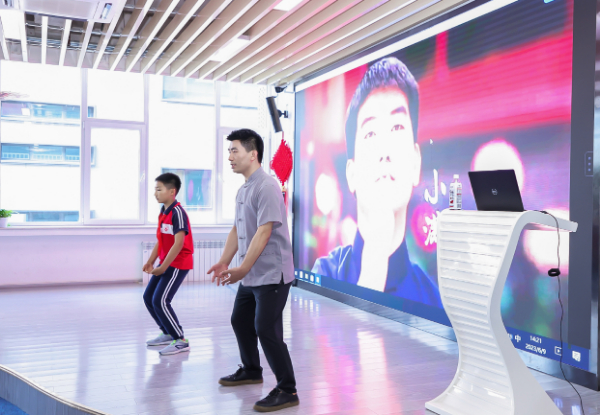 作為示范活動(dòng),北京理工大學(xué)附屬實(shí)驗(yàn)學(xué)校除了開(kāi)展主題日活動(dòng),還開(kāi)設(shè)了其他特色課程,舉辦中醫(yī)藥游園會(huì),吸引眾多學(xué)生參與?;顒?dòng)現(xiàn)場(chǎng),非遺傳承人代金剛手把手指導(dǎo)同學(xué)們練習(xí)八段錦。在中醫(yī)藥文化知識(shí)角,一名同學(xué)正跟著屏幕上的動(dòng)作指引練習(xí)五禽戲。除了智能互動(dòng)系統(tǒng),學(xué)校還專門布置中醫(yī)藥展覽、藥物標(biāo)本、器具模型等,讓同學(xué)們時(shí)時(shí)感受多樣的中醫(yī)藥文化。