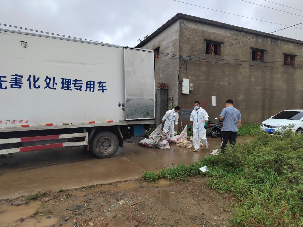 “家禽死亡后體內(nèi)帶有大量微生物,如不及時(shí)進(jìn)行無(wú)害化處理,任其腐爛發(fā)臭,病菌會(huì)四處擴(kuò)散,不僅污染環(huán)境,還容易引發(fā)疫病。”高仁鵬說(shuō):“我們組織專(zhuān)業(yè)人員和車(chē)輛對(duì)死亡家禽集中無(wú)害化處理,指導(dǎo)養(yǎng)殖場(chǎng)開(kāi)展消毒消殺,防止動(dòng)物疫情的發(fā)生。”