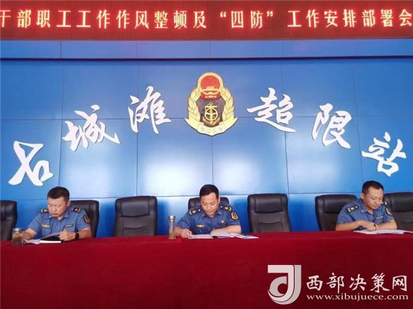 西部決策網(wǎng)訊 8月10日下午,古城灘超限檢測站召開干部職工工作作風整頓及“四防”工作安排部署會。會議由支部書記姬龍飛主持,全站所有職工參加會議。