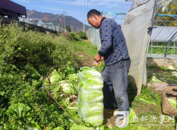 大棚內西紅柿和白菜長勢喜人,一大早,村民們陸續(xù)來到大棚中,采摘、裝筐、搬運,到處洋溢著豐收的喜悅。