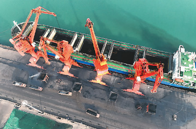 連日來,江蘇連云港港加快冬季電煤運(yùn)輸和儲備,全力保障發(fā)電企業(yè)供暖用煤需求。圖為11月22日,貨輪在連云港港煤炭碼頭卸載電煤。王春攝(人民視覺)