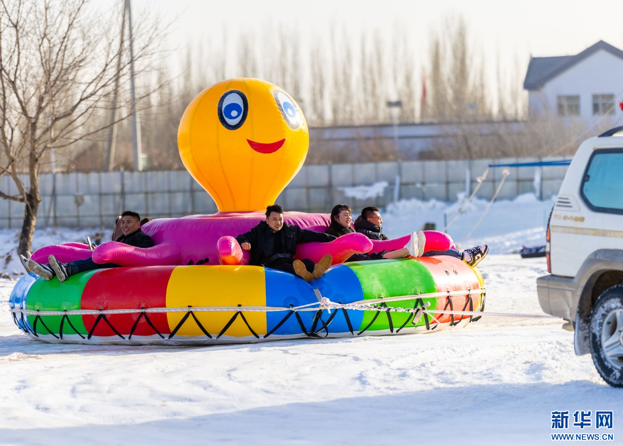 12月7日,游客在呼和浩特市玉泉區(qū)大庫(kù)倫村“冰雪大世界”內(nèi)體驗(yàn)雪地八爪魚項(xiàng)目。新華網(wǎng)發(fā)(丁根厚 攝)