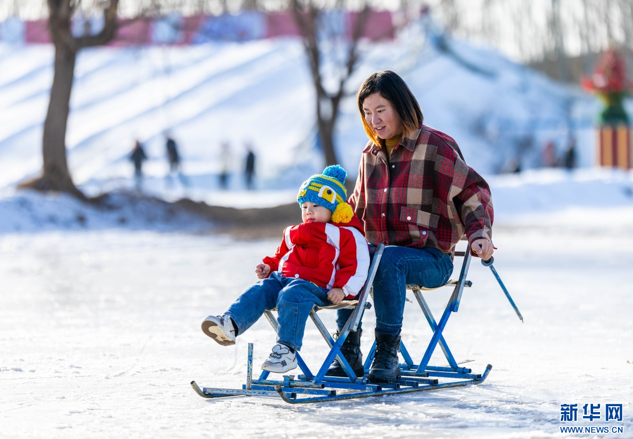 12月7日,家長(zhǎng)陪伴孩子在呼和浩特市玉泉區(qū)大庫(kù)倫村“冰雪大世界”內(nèi)體驗(yàn)滑冰車。新華網(wǎng)發(fā)(丁根厚 攝)
