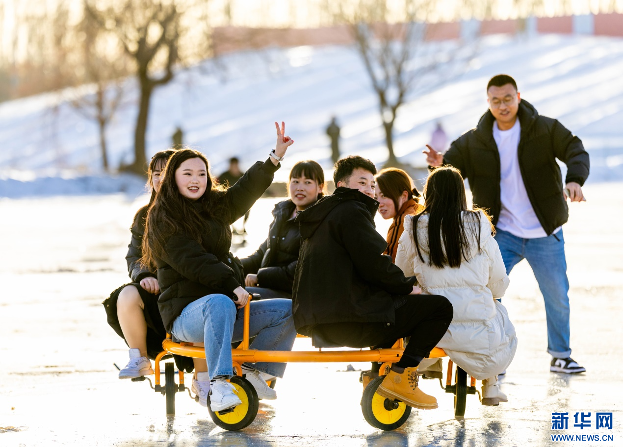 12月7日,游客在呼和浩特市玉泉區(qū)大庫(kù)倫村“冰雪大世界”內(nèi)體驗(yàn)多人冰車。新華網(wǎng)發(fā)(丁根厚 攝)
