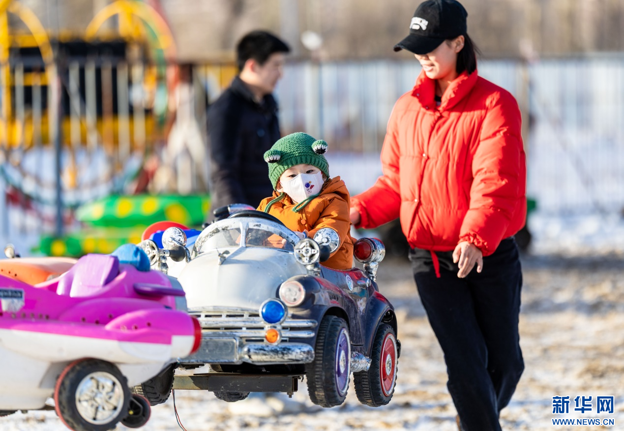 12月7日,小朋友在呼和浩特市玉泉區(qū)大庫(kù)倫村“冰雪大世界”內(nèi)體驗(yàn)旋轉(zhuǎn)汽車項(xiàng)目。新華網(wǎng)發(fā)(丁根厚 攝)