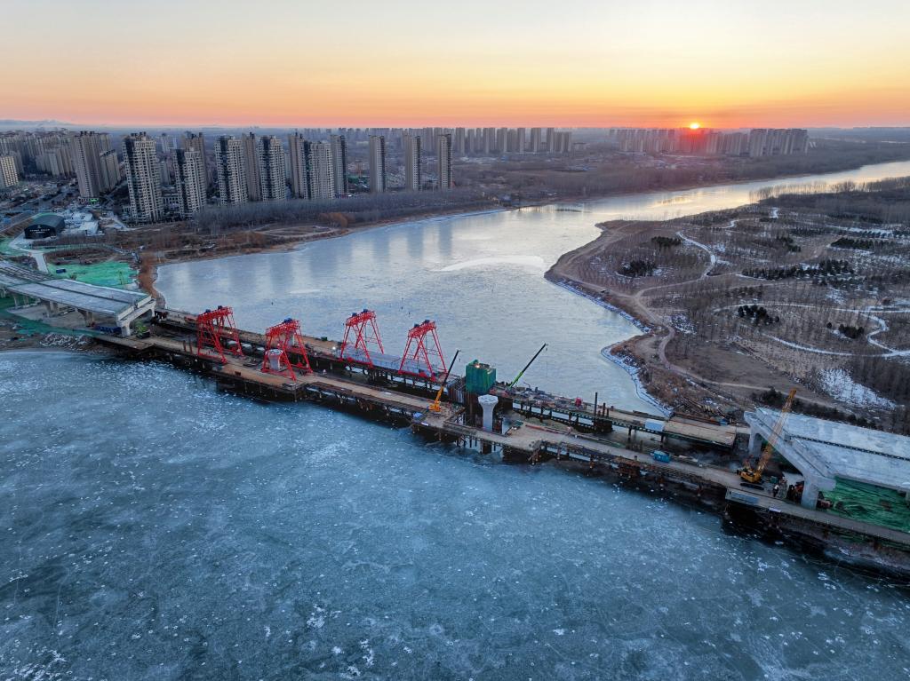 冬日,潮白河結(jié)冰的河面上,廠通路潮白河大橋項(xiàng)目正在爭(zhēng)分奪秒加緊施工。站在施工搭起的棧橋上眺望,河岸兩側(cè)的引橋已初具規(guī)模,向遠(yuǎn)處延伸。向東,是廊坊大廠回族自治縣已經(jīng)通車的廠通路;向西,則是通向北京城市副中心的通懷路。