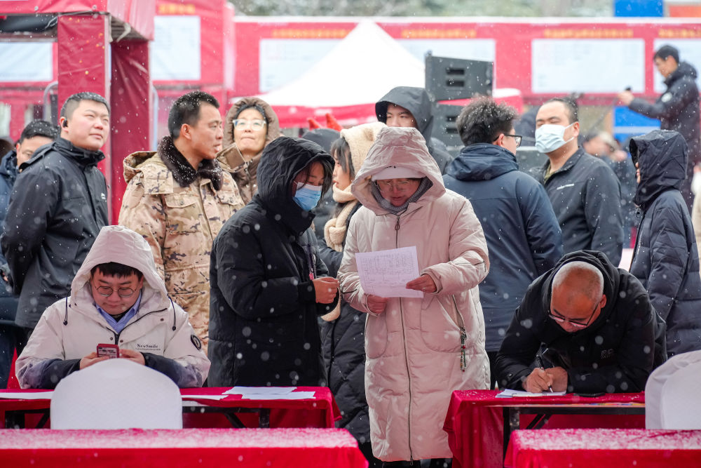 2月21日,求職者在山西省運(yùn)城市舉辦的2024年“春風(fēng)行動”暨高校畢業(yè)生招聘、“點(diǎn)對點(diǎn)”勞務(wù)輸出系列活動現(xiàn)場尋找適合的崗位。新華社發(fā)(閆鑫 攝)