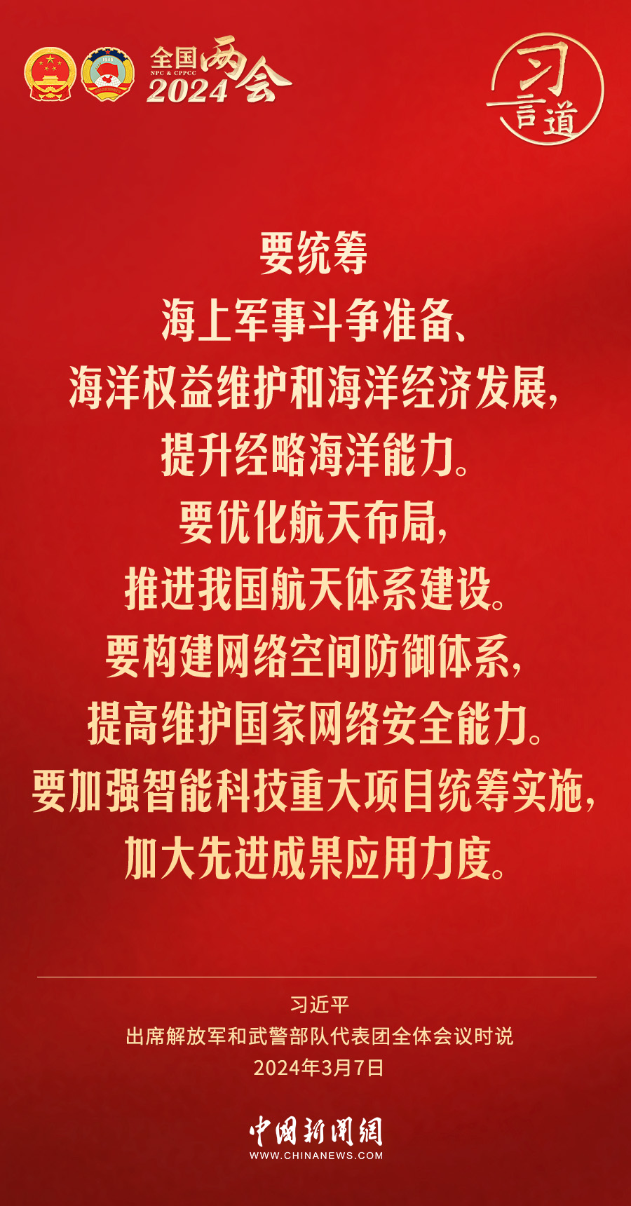 中共中央總書記、國家主席、中央軍委主席習(xí)近平7日下午出席十四屆全國人大二次會議解放軍和武警部隊代表團全體會議,習(xí)近平強調(diào)——