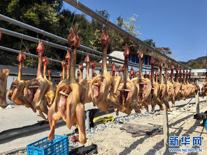 “我們的雞是石垟山上放養(yǎng)的三黃雞,熏制手法也是采用藤橋傳統(tǒng)技藝,很受消費者喜愛。”葉林國指著成排晾曬好的熏雞笑著說,“今年天公特別作美,不僅日曬充足,風也足夠大,這樣環(huán)境下晾曬的熏雞風味比往年更勝幾分,最近訂單多到都快忙不過來了。”
