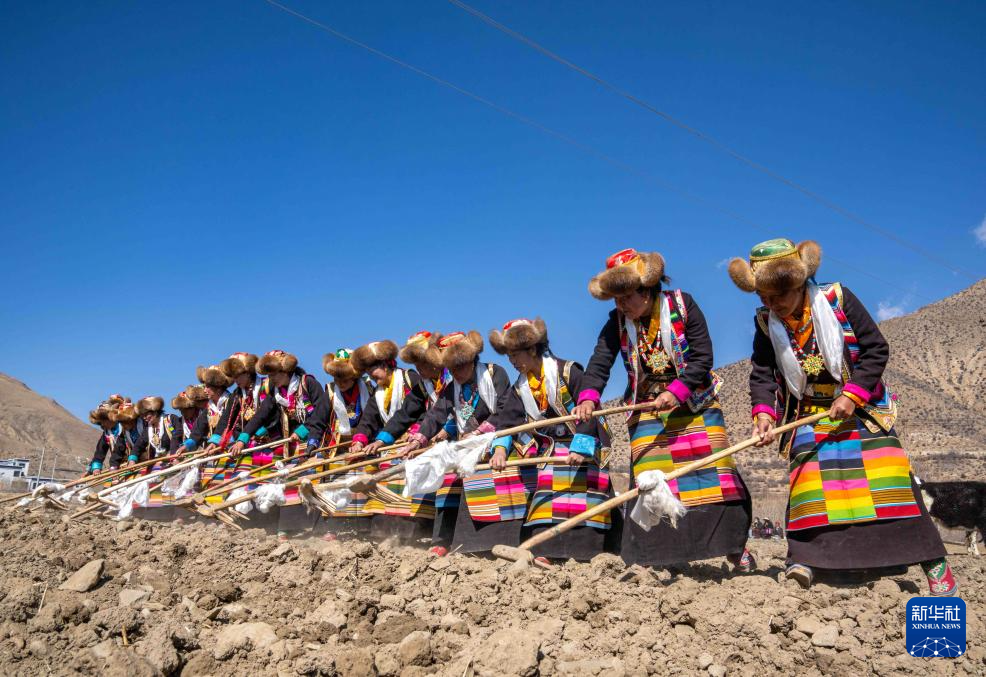 這是3月16日拍攝的西藏山南市瓊結縣加麻鄉(xiāng)加麻村的春耕儀式現(xiàn)場。新華社記者 旦增尼瑪曲珠 攝