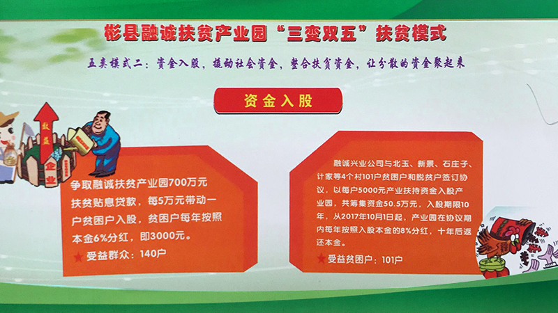彬州融誠集團公司按照“企業(yè)主導(dǎo)、政府搭臺、群眾參與、社會共建”的思路,圍繞主導(dǎo)產(chǎn)業(yè),緊盯市場需求和脫貧政策動向, 在外出考察學(xué)習(xí)的基礎(chǔ)上,借鑒貴州省六盤水市“三變”改革的成功經(jīng)驗,以“資源變資產(chǎn)、資金變股金、農(nóng)民變股東”三變改革為基礎(chǔ), 探索總結(jié)出了符合融誠實際的“三變雙五”新模式。