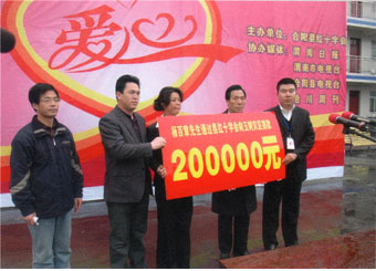 楊百章通過合陽縣紅十字會向玉樹災(zāi)區(qū)捐款20萬元